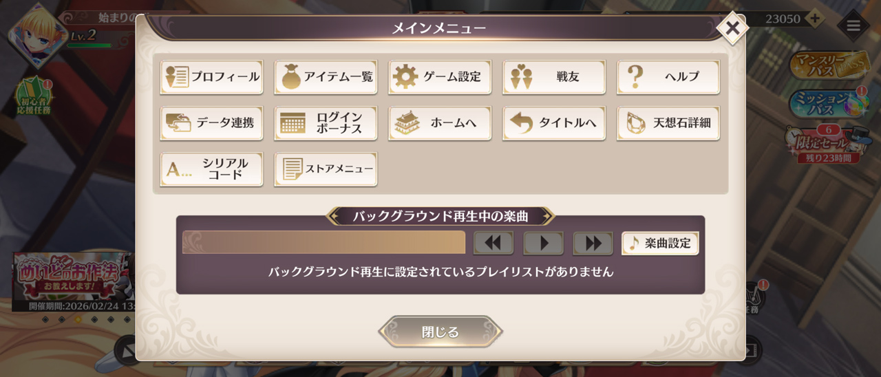 2026年3月2日2026年2月16日 管理人 関連記事 あやかしランブル!【あやらぶ】 戦国BASARA バトルパーティー ソウル戦記S 式姫転遊記 姫神召喚 〜異世界との絆〜 雀魂‐じゃんたま‐ ひめがみ神楽 アニマエ・アルケー 戦国再臨:大戦の覇者となれ 終末のアーカーシャ